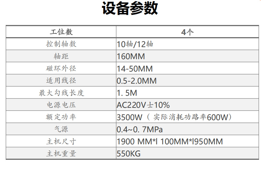 3.快速換型:旋轉(zhuǎn)盤根據(jù)磁環(huán)任意調(diào)節(jié),銅線規(guī)格任意更換,伺服電機(jī)數(shù)量多,機(jī)械位置手動調(diào)整少